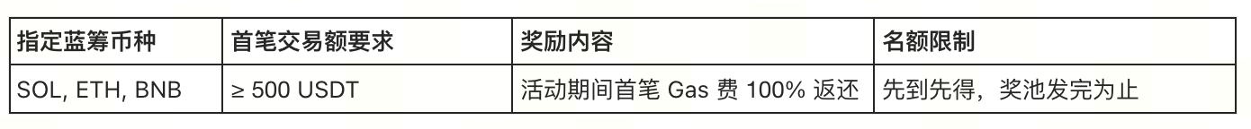 活动期间,无论新老用户,在 Gate Swap 完成活动期间的第一笔指定“蓝筹币种” Swap 交易,且该笔交易额满足门槛,即可获得 Gas 费全额返还的资格(Gas 返还最高上限为 30 USDT)。总奖池为 20,000 USDT,先到先得。