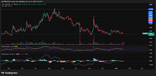 此外,这一趋势正在形成专家所说的看涨背离。到目前为止,UNI的价格在大约5.40美元附近保持相对平稳。