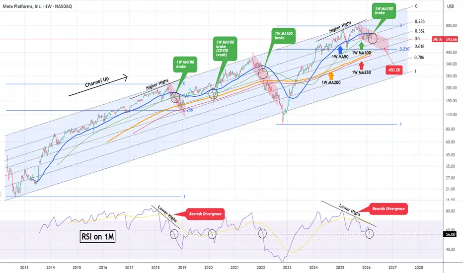 META 跌破3年来的1周期MA100。大规模抛售在即。